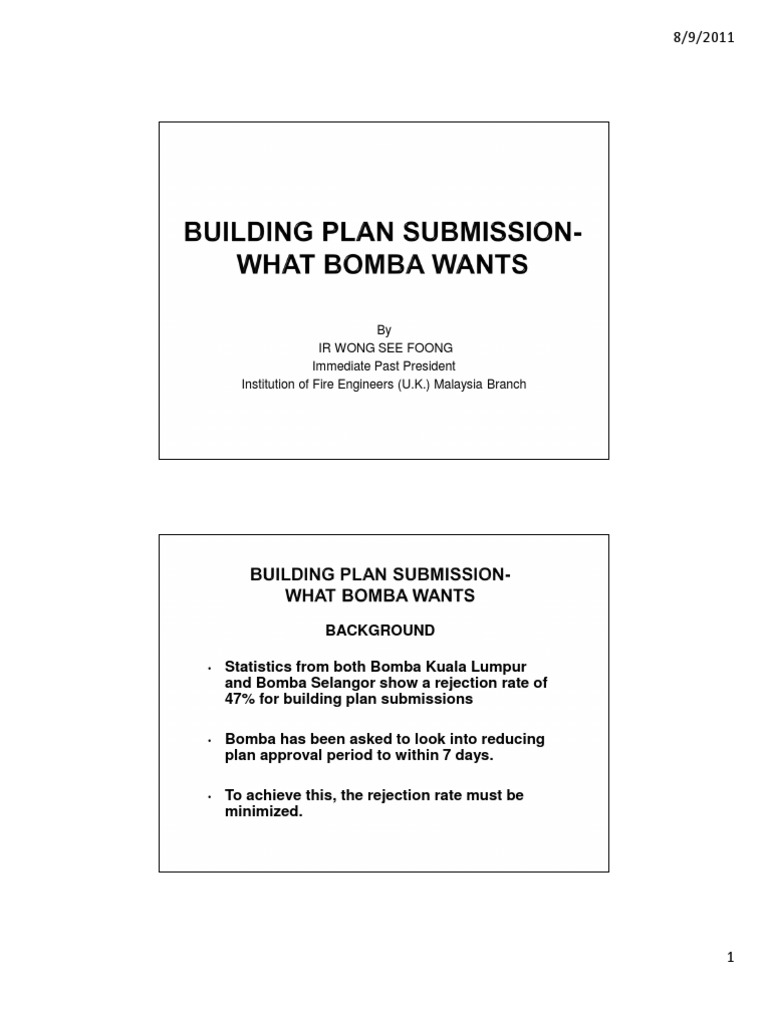 Chkl in partnership with the malaysian institute of planners (mip), the institute of architects malaysia (pam) and the this manual contains information on the schedule of fees for filing, checklist for plan submission, application forms and the list of planning, building and engineering guidelines. Building plans submission and approval a development plan in malaysia is implemented within the framework provided under the national only upon approval of the layout plan can the building plan be submitted for approval with the rest of the. On the other hand, building plan (bp) approval is needed when the owner seeks to have the details of development checked and approved to comply with the the rejection of the km or bp submission is expected. If the land title is different from the actual land use, the owner has to apply for. The above information is a general guide towards making the initial steps, decision and planning for the intended business by potential investors and business owners.
