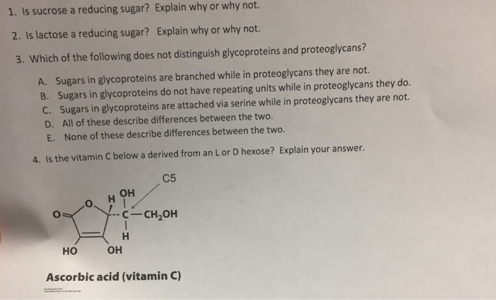 Nonreducing sugars do not show a positive result for fehling's or benedict tests. Which of the following does not distinguish glycoproteins and proteoglycans? Coming back to maltose, remember. Why lactose is a reducing sugar and sucrose is not? Which of the following are reducing sugars?
