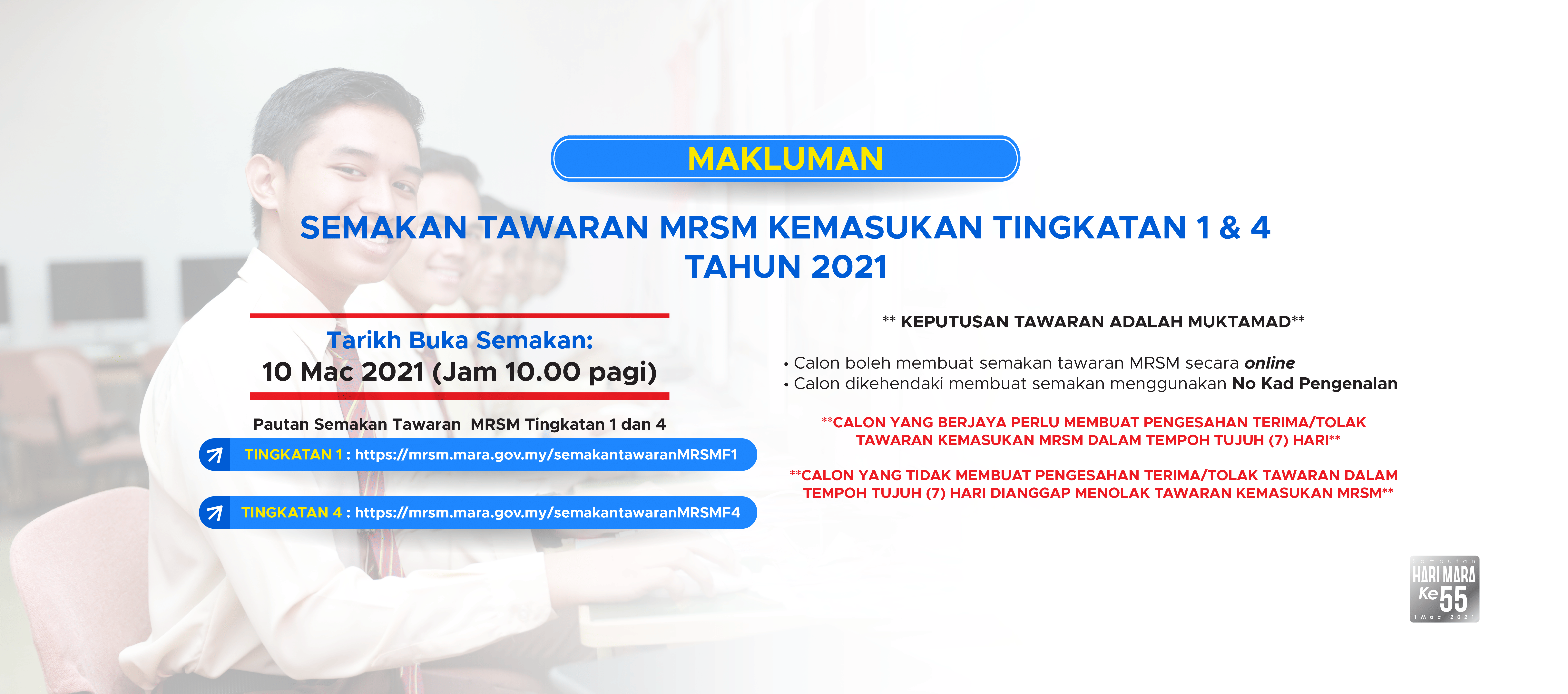 Nwcfyvypuhiv1m from cdnmara.gumlet.io Ministry of foreign affairs, malaysia wisma putra. Search the world's information, including webpages, images, videos and more. Semakan keputusan tawaran mrsm sesi kemasukan tahun 2019 bagi tingkatan 1 dan tingkatan 4. Hanya permohonan yang memenuhi syarat kelayakan sahaja akan dipertimbangkan oleh pihak mara. Sekolah awam akan ditempatkan di mrsm kuala kubu bharu melalui permohonan mrsm, dengan kurikulum untuk menampung sains komputer dan pengekodan. Pengambilan pertama untuk sekolah inovator digital akan diadakan pada tahun 2019 untuk pelajar tingkatan 1. Segala permohonan pengambilan pelajar ke mrsm diuruskan oleh pihak mara. Rendah sains mara (mrsm) tahun 2019.